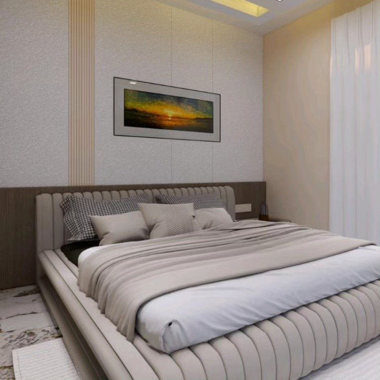 Experience comfort in a luxurious bedroom designed for relaxation and a peaceful stay at your farmhouse.